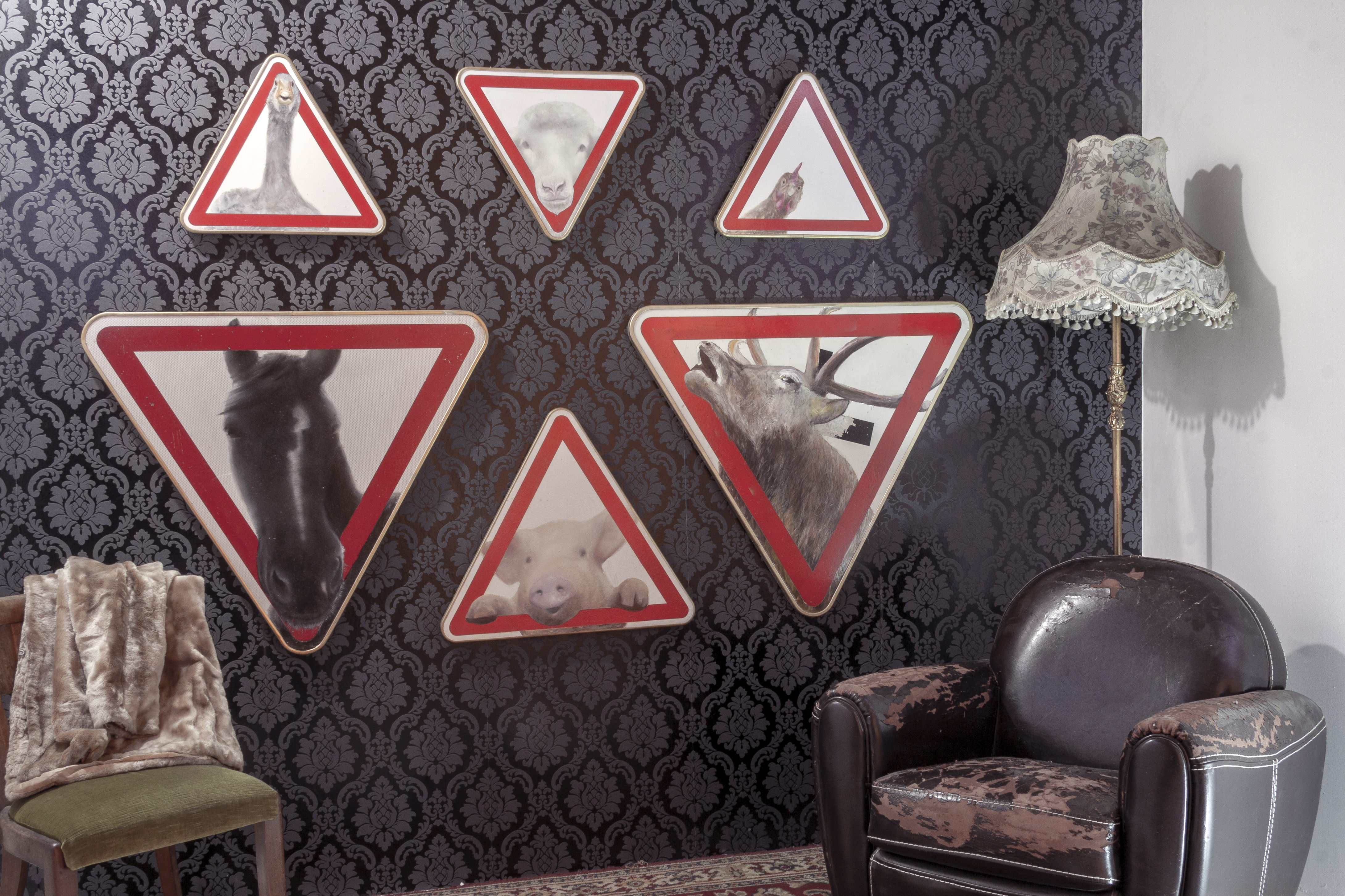 Symbole de cet homme pressé et dominateur, l’automobiliste n’entretient avec la nature qu’une relation lointaine et utilitariste. Seuls les panneaux routiers lui rappellent occasionnellement la présence alentours d’animaux, sauvages ou domestiques, avec lesquels une « rencontre » fortuite pourrait être dommageable. Nature: attention, danger !