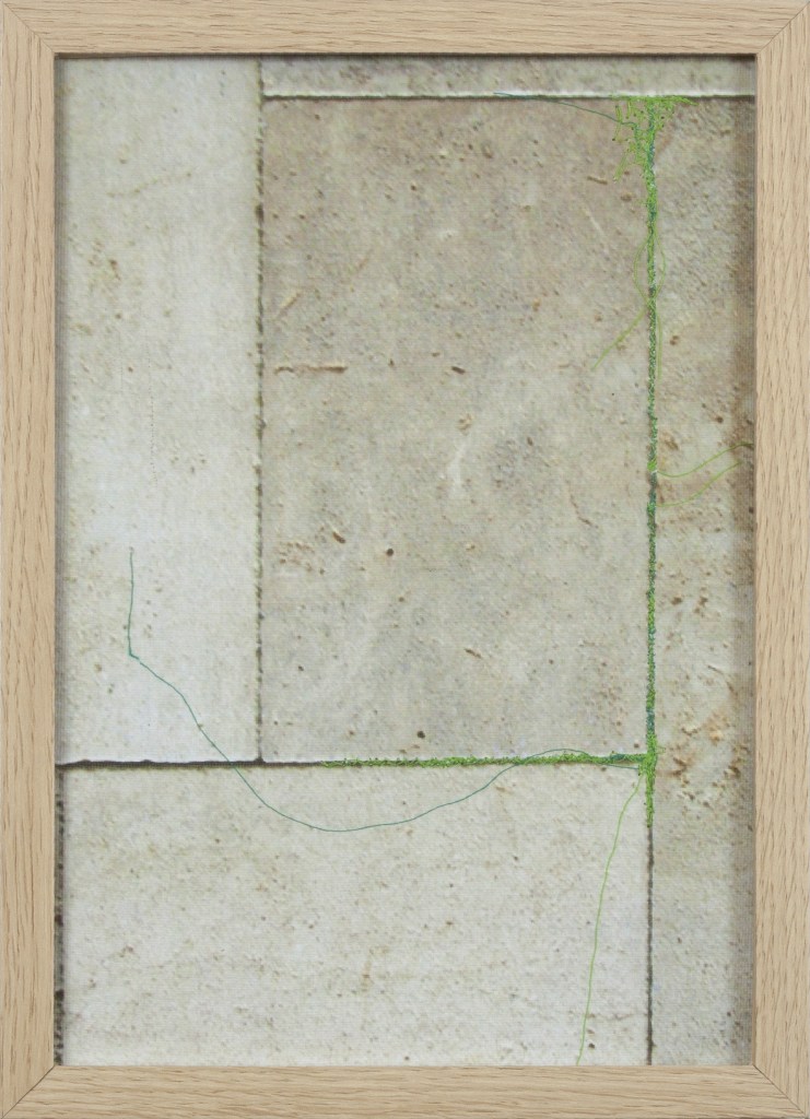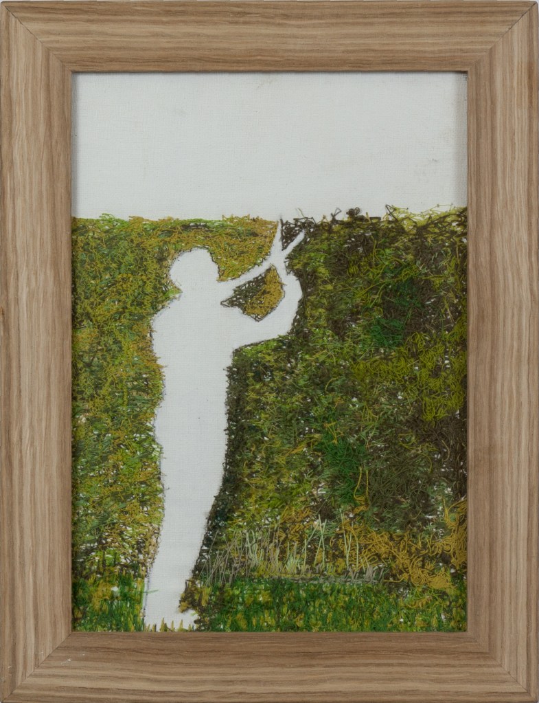 Filant la métaphore couturière, l’artiste tente enfin, dans un dernier élan, de « raccommoder » nature et culture, en usant de ses fils pour recoudre un tableau déchiré…