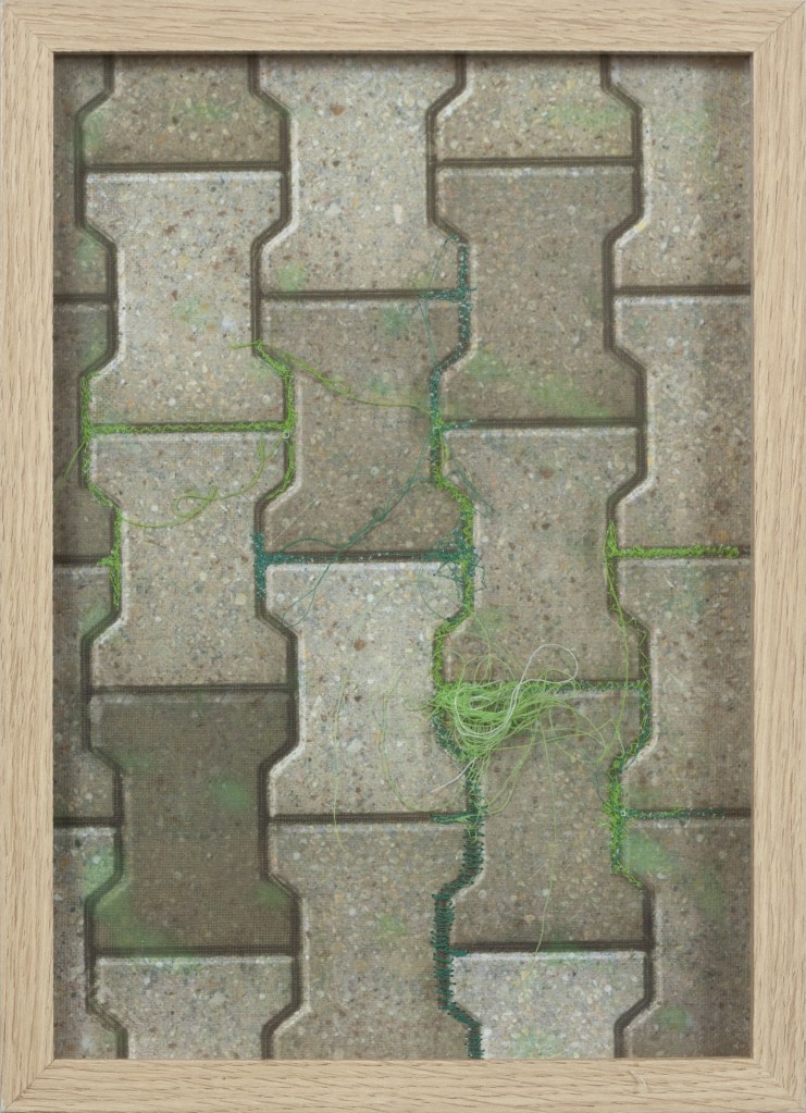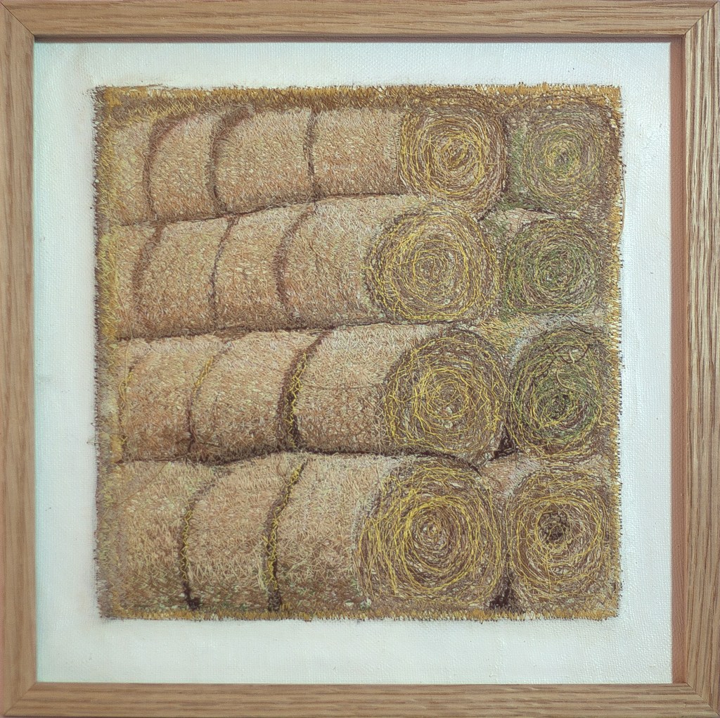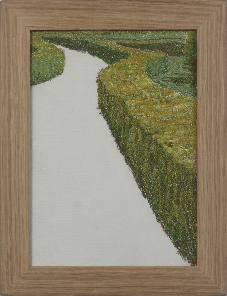 pour donner libre cours à sa vision du paysage en 2017, d’utiliser la machine à coudre, envisagée comme processus à la fois de la mécanisation du travail (moteur de la création des paysages agro-industriels) et de la volonté de l’homme de « dompter » la nature pour répondre à ses besoins.