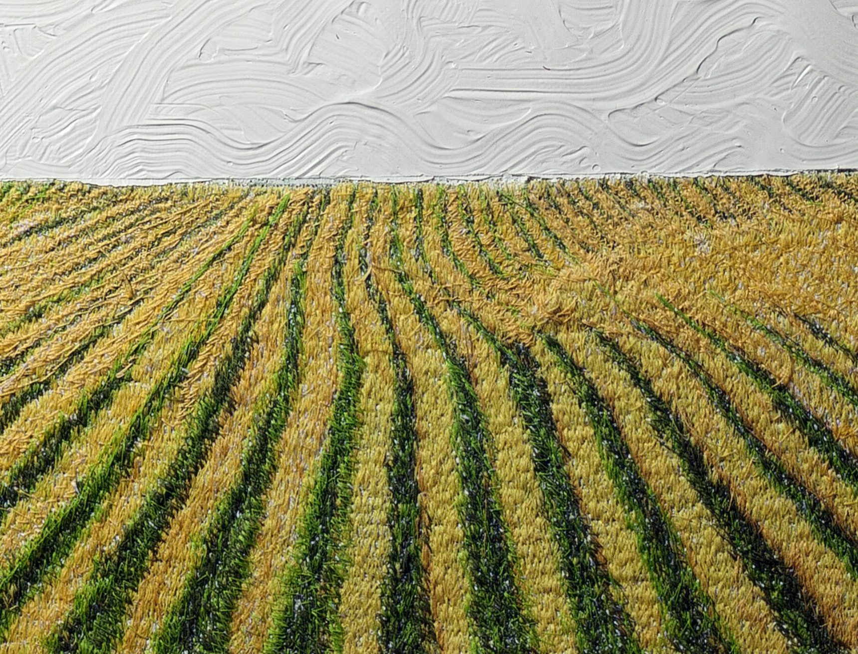 De même, la parcelle de colza rectiligne filant jusqu’à l’horizon n’est pas sans évoquer le Champ de blé aux corbeaux de Van Gogh, dans une version rationalisée, domestiquée, moins brute et tourmentée, dénuée de toute présence animale « nuisible ».