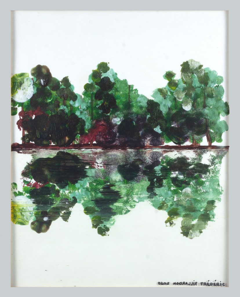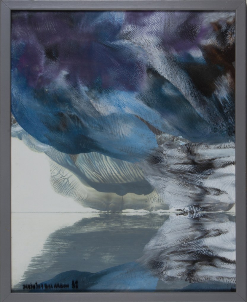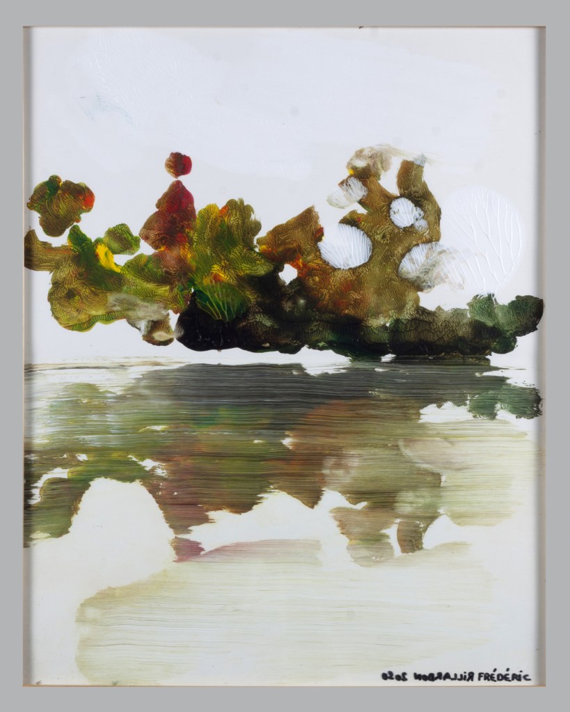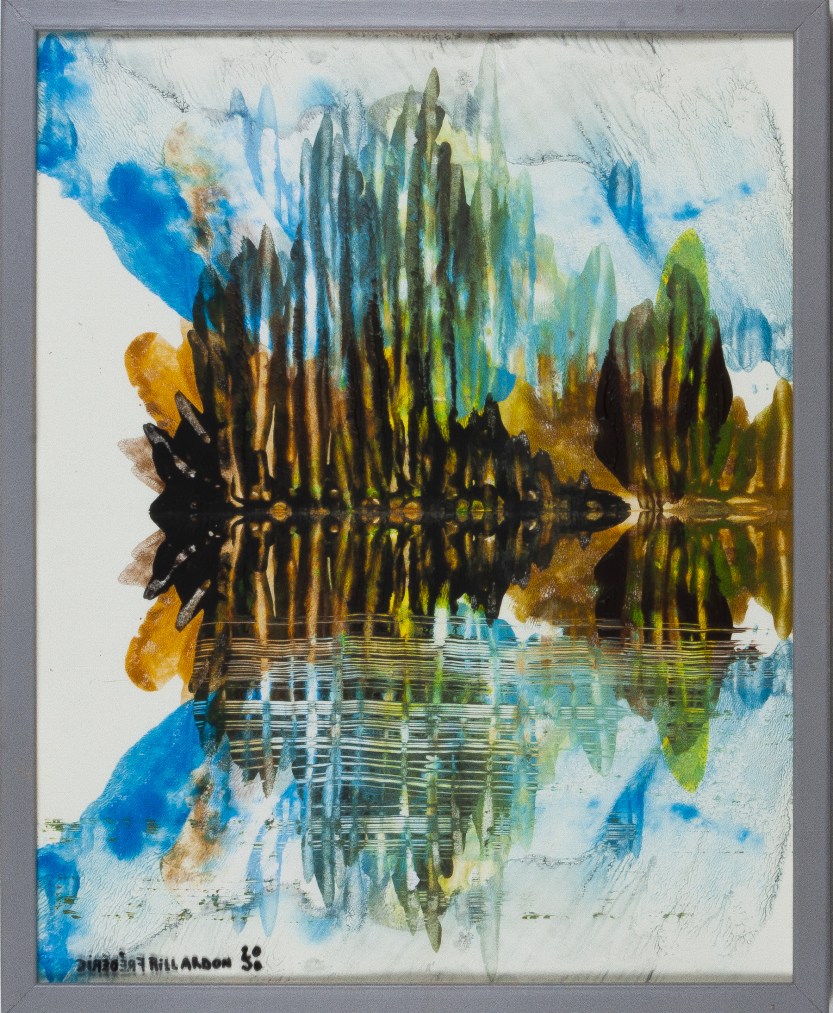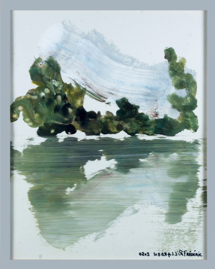 Série peinture acrylique sur feuille pliée signée sous le sous verre