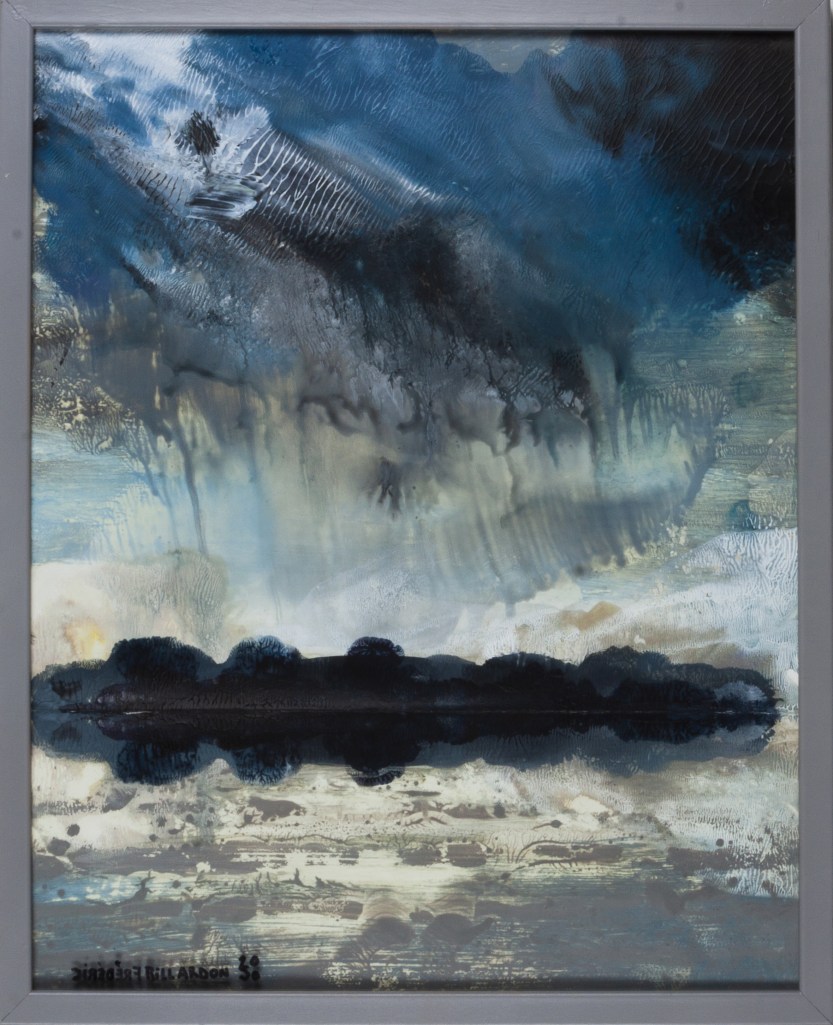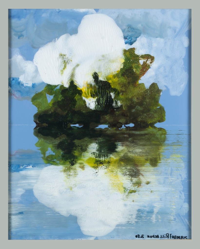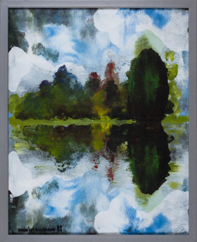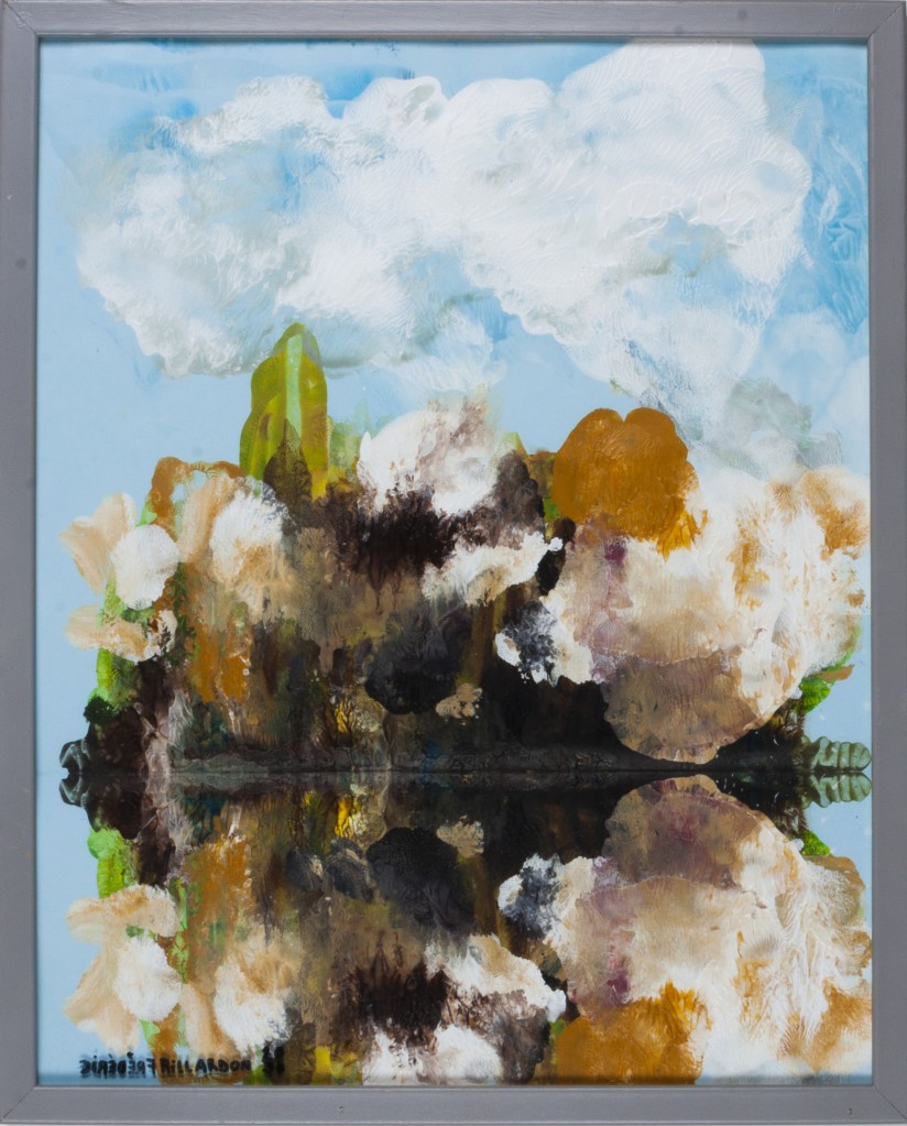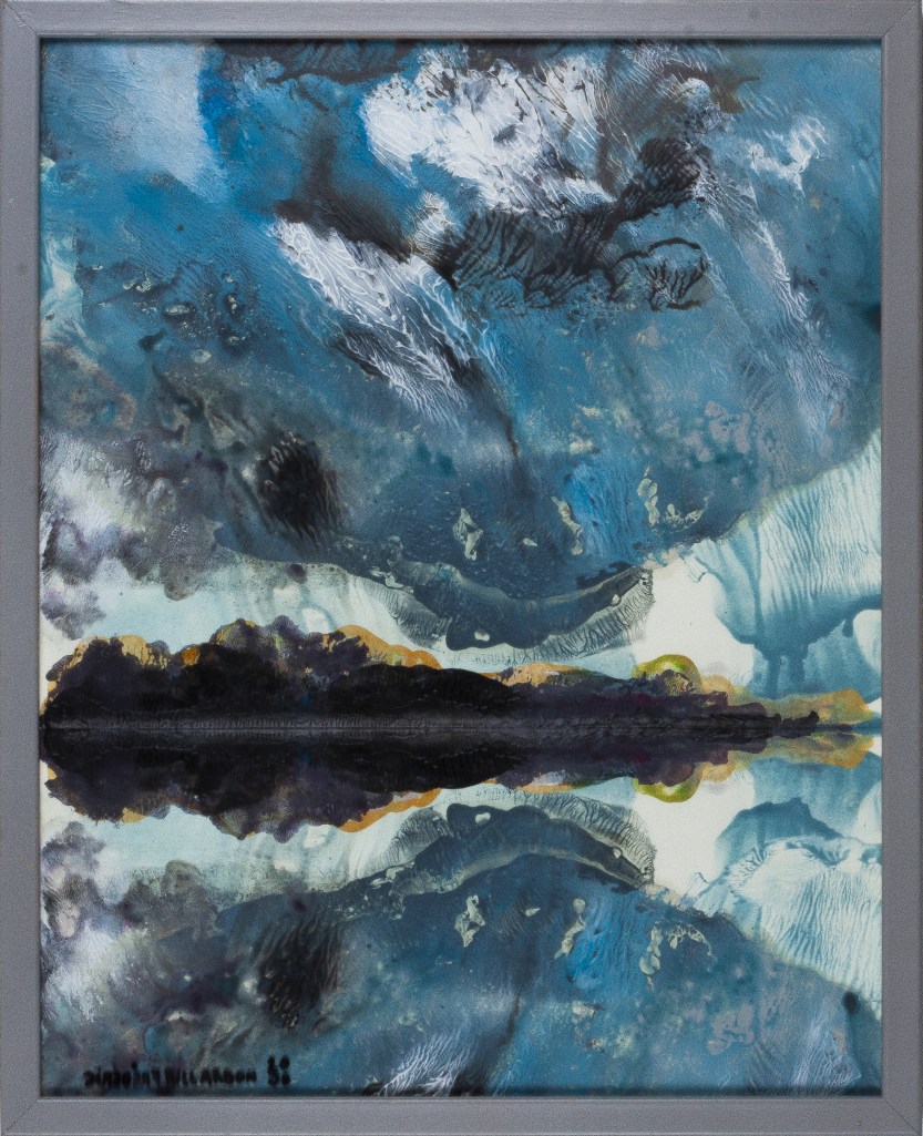 Série peinture acrylique sur feuille pliée signée sous le sous verre