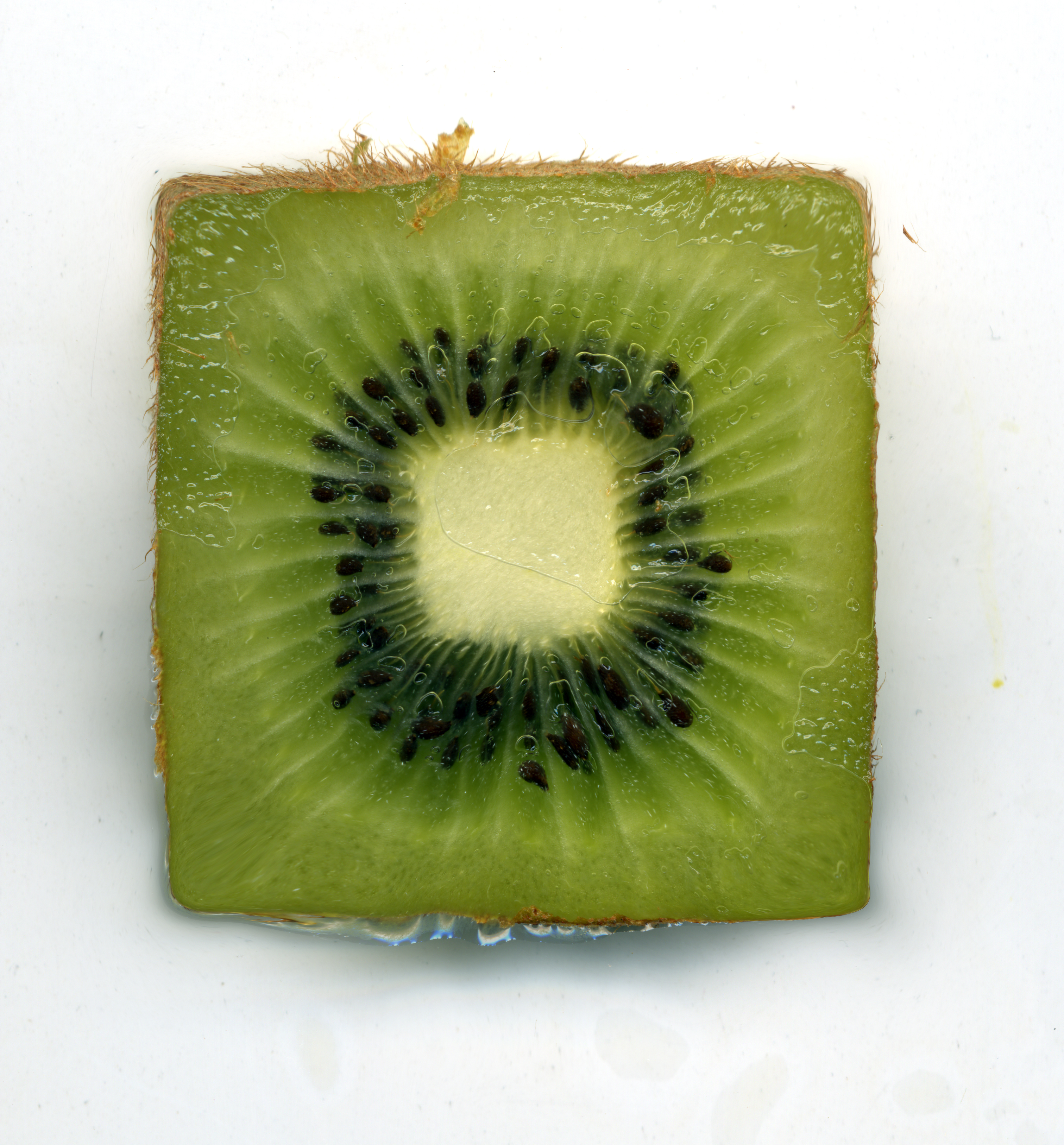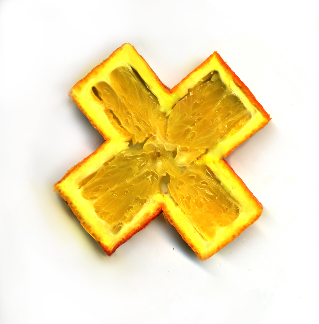 Fruits scannés et retravaillés à partir d’un logiciel photo. Formellement, les fruits font références aux touches de manettes des jeux vidéos.